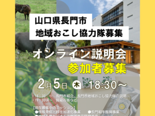 山口県長門市では、現在、3業種で地域おこし協力隊を募集中です!そこで、2/5(木)18時30分からZOOMによるオンライン説明会を行います。 この説明会への参加が選考に影響することはありません。顔出しなしOK、ニックネー […]