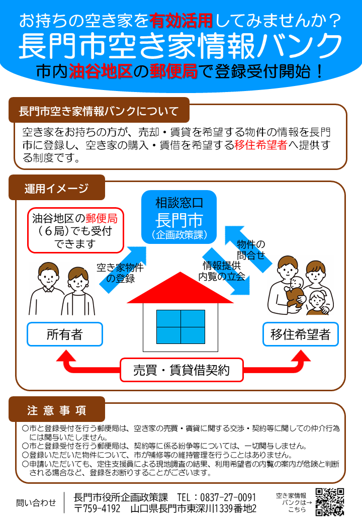 油谷地区の郵便局で、空き家情報バンクの物件登録申請受付を始めました!!